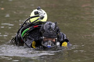 A law enforcement official briefed on the investigation said divers are looking for a computer hard drive that may have been dumped in the lake. The official wasn’t authorized to speak by name about an ongoing investigation and spoke on condition of anonymity.