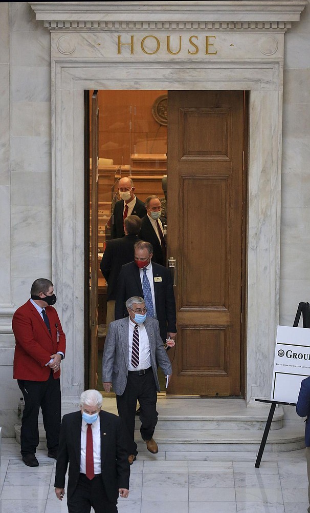 Paddlers set off Wednesday on a New Year’s Day float from the boat ramp on the Little Maumelle River at Pinnacle Mountain State Park.